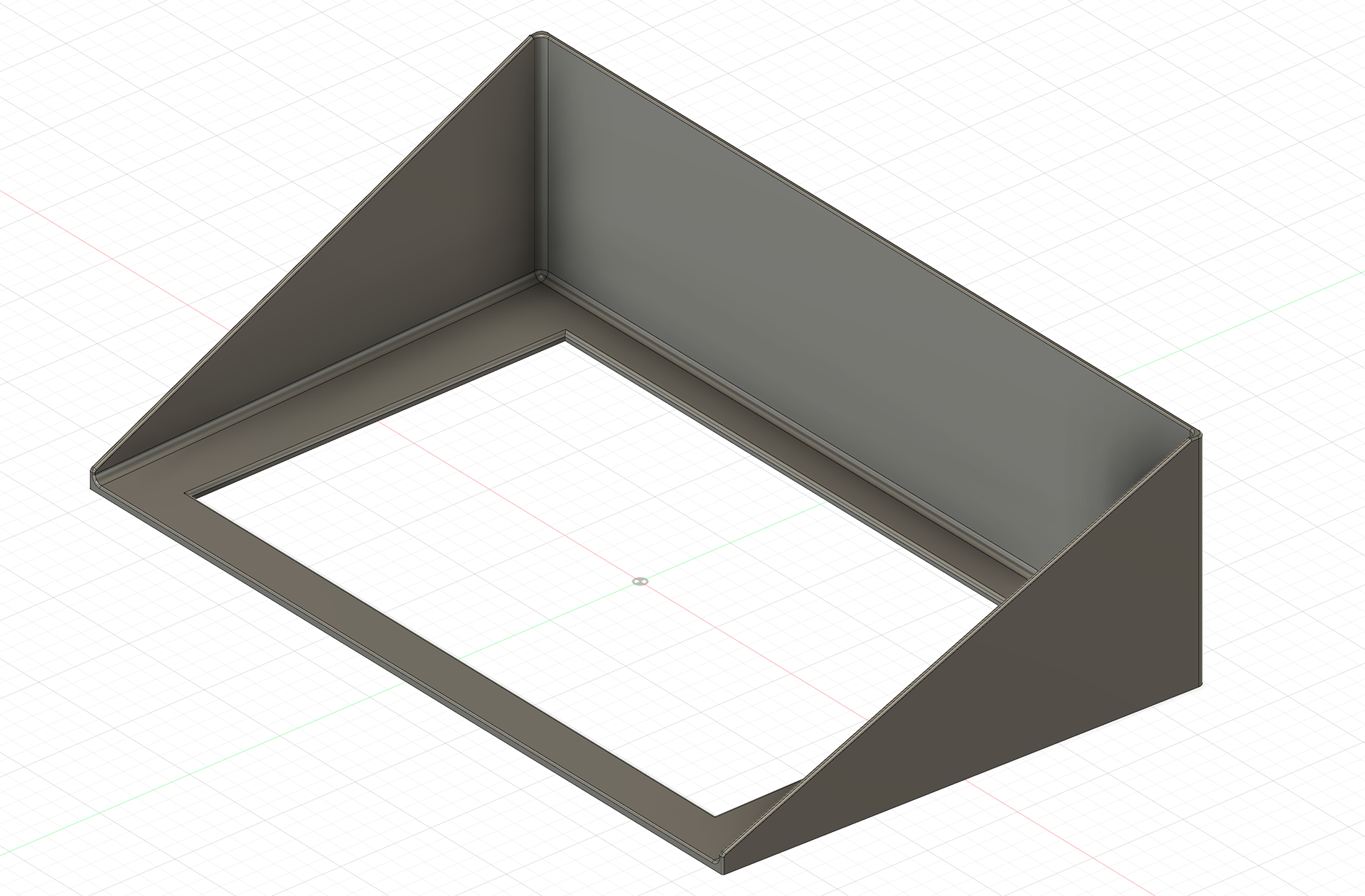 To make this I took the measurements from the vehicle and modelled them in CAD. Next I created a 1.5mm thick sunscreen that would automatically locate itself around the screen. Every edge and corner is filleted to reduce sharpness and improve strength.